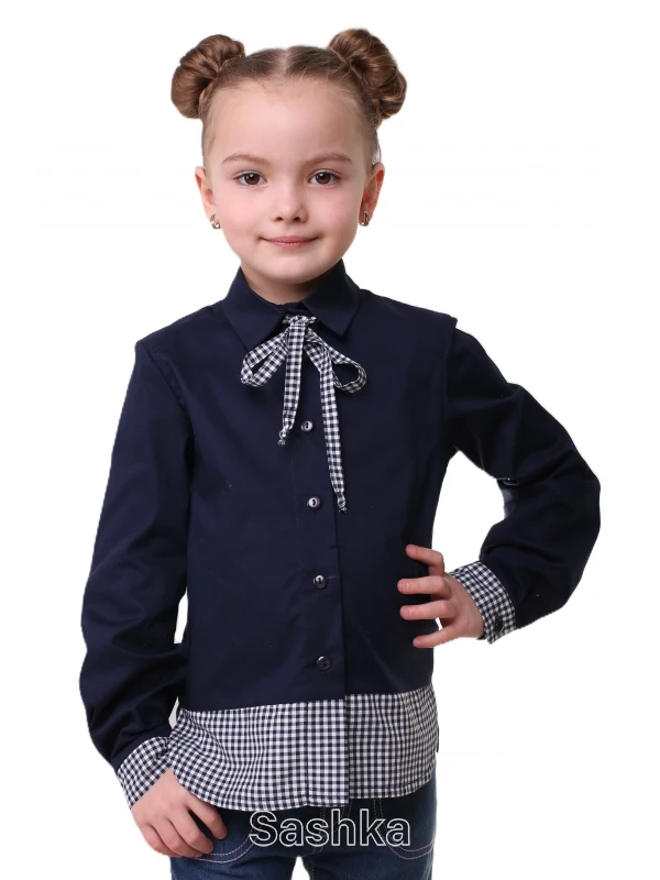 Темно-синя блуза-сорочка для дівчинки - відмінне рішення на кожен день. Модель досить зручна, легка і немарка. Якщо у вашому навчальному закладі прийнята синя шкільна форма, а для піджака в приміщенні досить жарко, така блузка стане справжньою знахідкою. Модель пошита на розмір 116 до 176 і підійде дівчаткам молодшої школи і 5-11 класів.