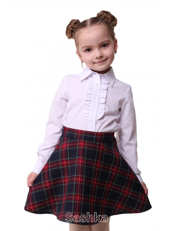 Спідниця для дівчинки Sashka шкільна напівсонце червоно-синя клітинка (напіввовна), розмір 116-152