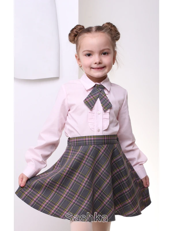 Спідниця для дівчинки Sashka шкільна напівсонце сіро-рожева клітинка (напіввовна), розмір 116-146