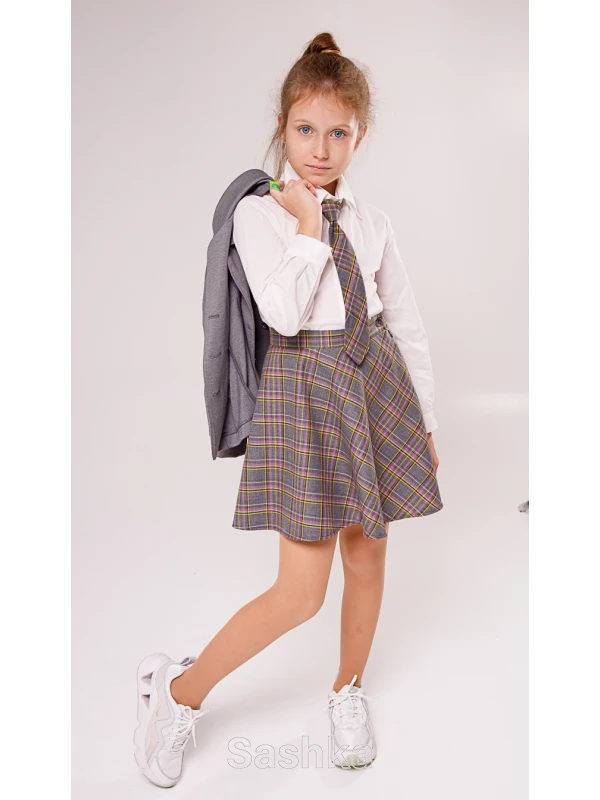 Спідниця-напівсонце - легка, кокетлива, зручна, саме тому і користується особливою популярністю. Класичний варіант відмінно комбінується з ошатними блузами і повсякденними водолазками абсолютно будь-якого крою і фасону. Доповнити образ можна піджаком або жилетом на свій розсуд. Сіра шкільна форма в клітинку сьогодні користується попитом не менше, ніж чорна, синя або бордова.