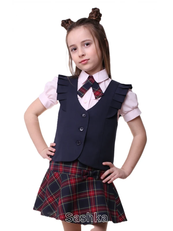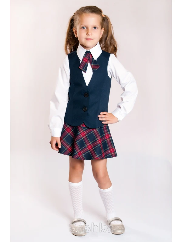 Спідниця на широкій кокетці допомагає в створенні цікавих образів. Вона легко комбінується з блузами, сорочками і водолазками як світлих, так і темних кольорів. Невеликий бантик спереду додає моделі легкості і дитячості. Завдяки вшитой ззаду резинці спідниця відмінно сидить на дитині, не перекручуючись і не приносячи дискомфорту протягом дня.
