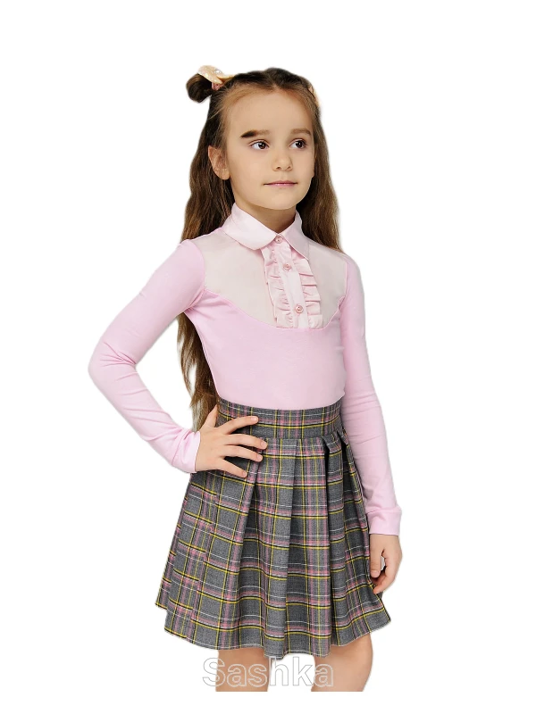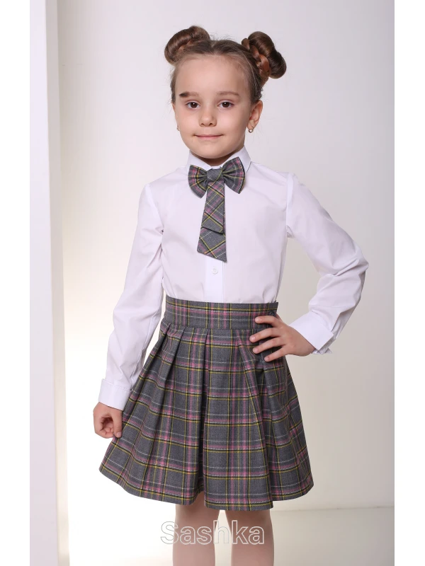 Спідниця для дівчинки Sashka шкільна сіро-рожева клітинка (напіввовна), розмір 116-152