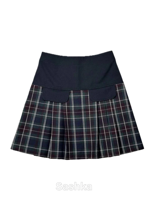Стильна напіввовняна спідниця на кокетці - чудовий варіант для шкільної форми, урочистих заходів і повсякденних образів. Ми об'єднали дві тканини - синю для широкої кокетки і клапанів, і синю клітинку - для нижньої частини спідниці, щоб ви могли поєднувати модель з будь-яким взуттям. Така спідниця пасуватиме як до класичних дитячих туфель, так і до улюблених яскравих кедів чи кросівок вашої дівчинки. Широкі симетричні складки додають фасону легкості.