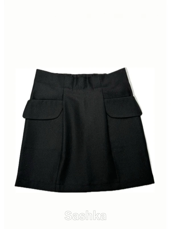 Спідниця для дівчинки Sashka шкільна з клапанами чорна (напіввовна), розмір 116-146
