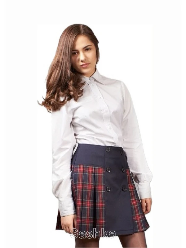 Стильна напіввовняна спідниця на кокетці - чудовий варіант для шкільної форми, урочистих заходів і повсякденних образів. Ми об'єднали дві тканини - синю для широкої кокетки і клапанів, і червоно-синю клітинку - для нижньої частини спідниці, щоб ви могли поєднувати модель з будь-яким взуттям. Така спідниця пасуватиме як до класичних дитячих туфель, так і до улюблених яскравих кедів чи кросівок вашої дівчинки. Широкі симетричні складки додають фасону легкості.