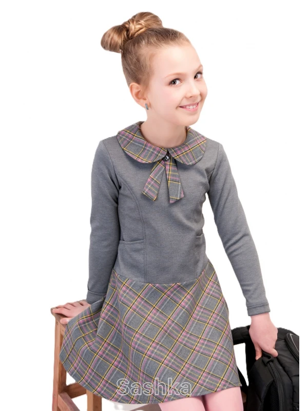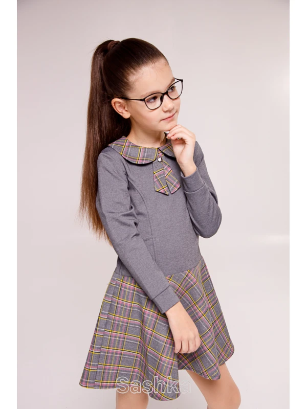 Трикотажна сукня зі спідницею і коміром в клітинку - ідеальний вибір шкільного одягу