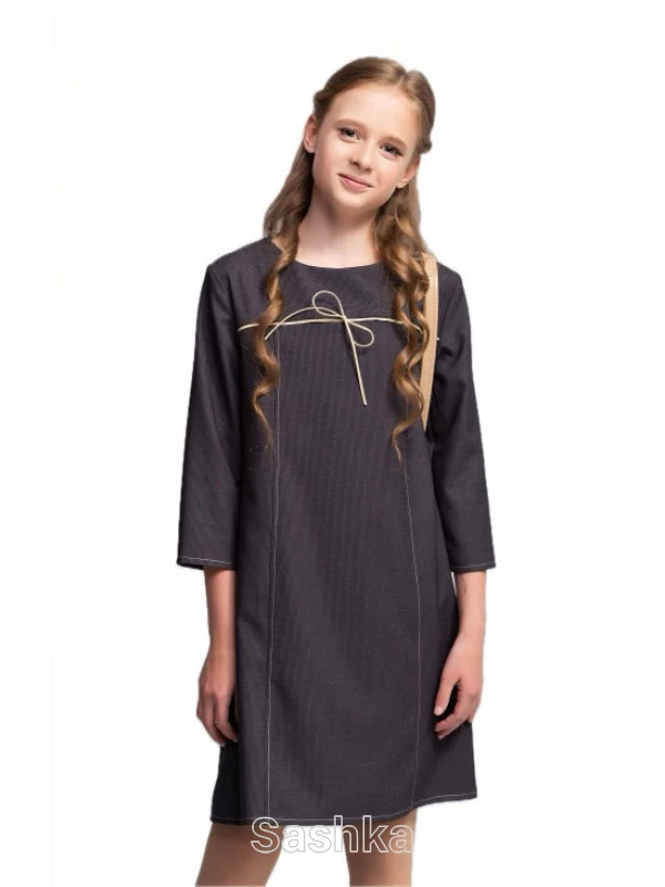 Темно-сіра сукня вільного крою поєднує стриманість, витонченість і легкість. Саме такою і повинен бути стильний дитячий одяг. У такій сукні дуже легко відчувати себе красивою і при цьому відповідати вимогам корпоративного стилю.