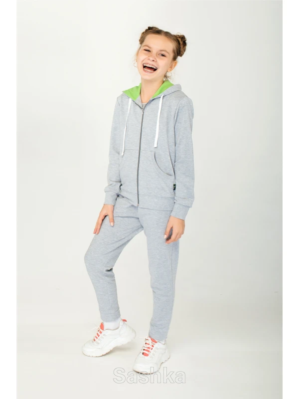 Спортивний костюм для дівчинки світло-сірий з салатовим