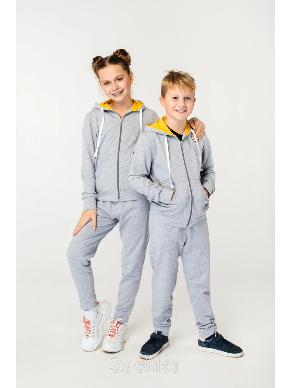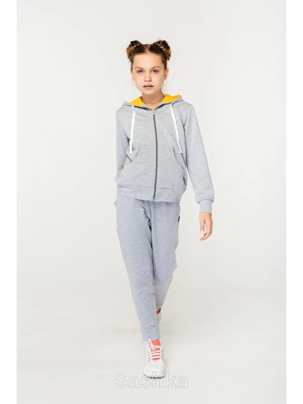 Спортивний костюм для дівчинки світло-сірий з жовтим