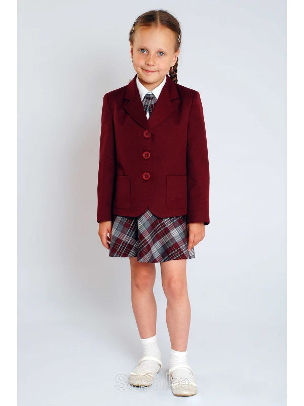 Жакет для дівчинки Sashka шкільний бордовий (напіввовна), размер 116-164