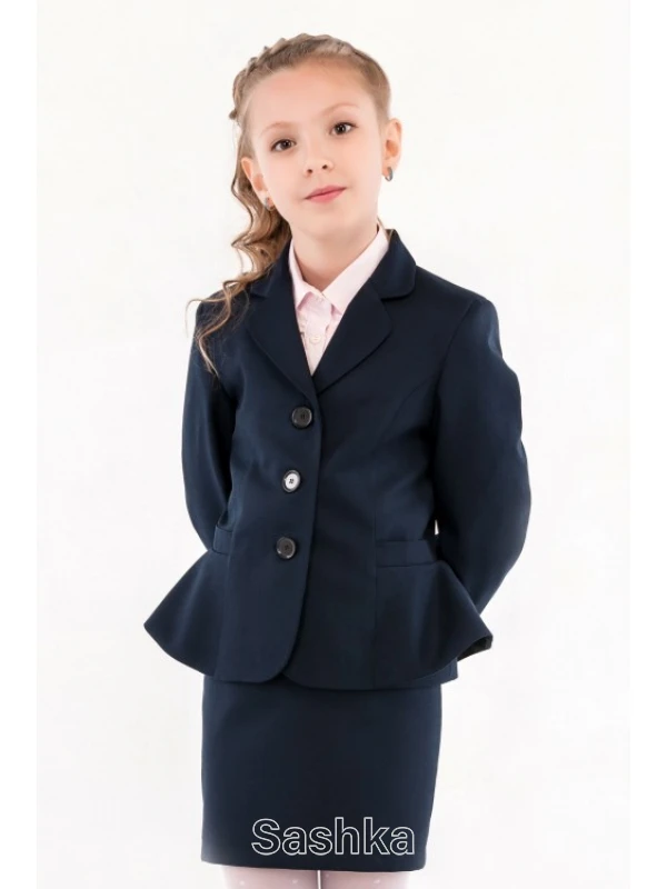 Жакет для дівчинки Sashka шкільний синій з басками (напіввовна), розмір 116-146