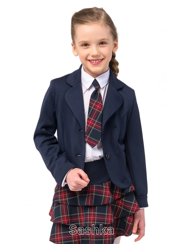 Синій трикотажний жакет для дівчаток - один з улюблених предметів гардероба, і це не дивно. Його можна носити на заняття в якості шкільної форми для першокласників і дітей старшого віку, а також у повсякденному житті. Підкреслений сілует і формальність одягу, елегантність і комфорт - ми це об'єднали в представленій моделі.