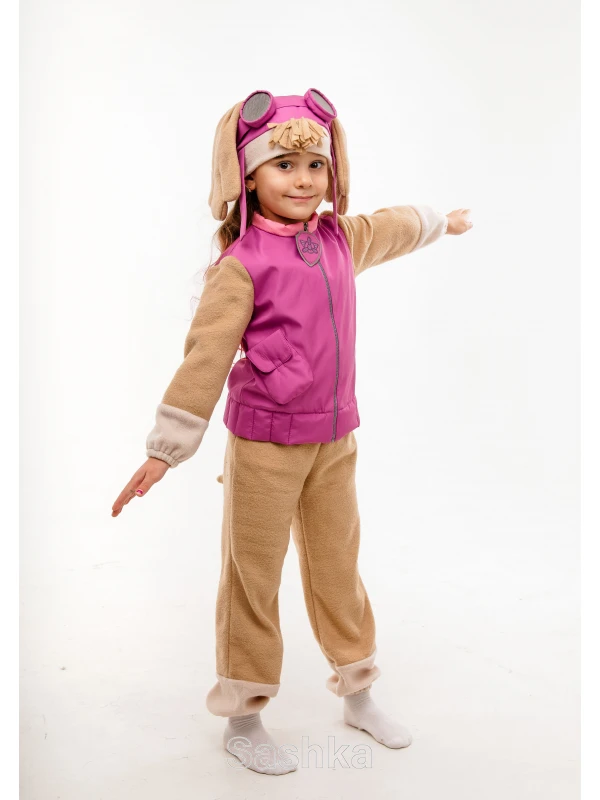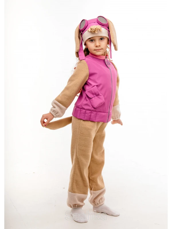 Ми детально відтворили костюм Цуценя Скай. У комплект входять штани кремового кольору, рожева курточка і головний убір, що імітує льотні окуляри.