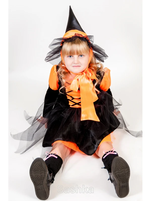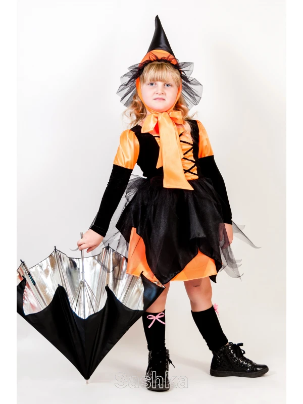 Карнавальний костюм Відьмочка (помаранчева) для дівчинки на Хелловін, розмір 98-140
