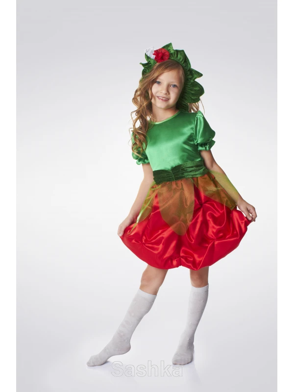 Ягодка-полуничка - символ літа, сонця і безтурботних канікул. Ми підготували карнавальний костюм полунички, який освіжить будь-яке свято і додасть яскравих фарб. Наряд складається з сукні і пов'язки на голову.