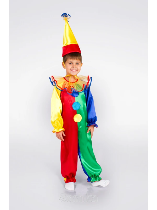 Веселий, артистичний, який дарує позитивні емоції - саме в такого клоуна можна перевтілитися за допомогою нашого карнавального костюма. Ми пошили неординарний і в той же час зручний комбінезон, який сподобається дитині поєднанням яскравих фарб, а батькам - практичністю і простотою надягання. Костюм доповнений ковпаком.