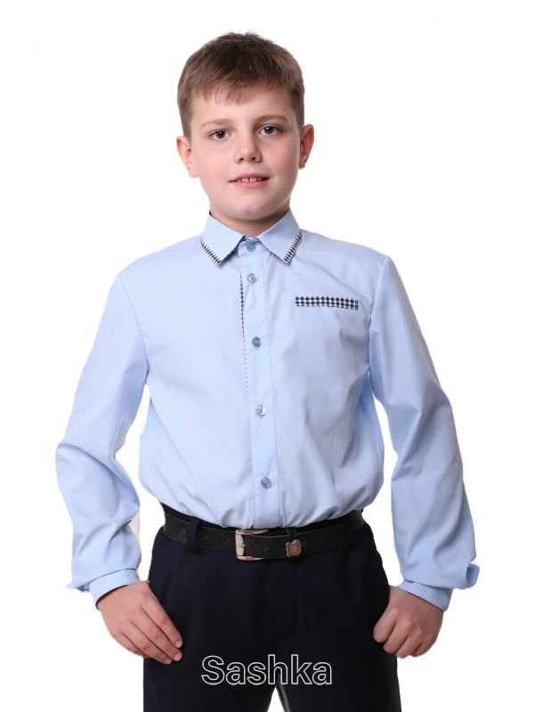 Класична блакитна сорочка - відмінне рішення як стильної шкільної форми для хлопчиків. Представлена модель поєднує акуратний фасон, приємний колір, комфорт і декоративні елементи. Все це робить виріб не тільки відповідним для корпоративного стилю, але і цікавим для дитини.