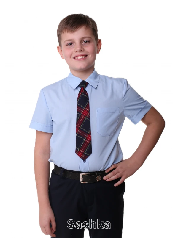 Сорочка для хлопчика Sashka блакитна шкільна класична короткий рукав, розмір 116-158