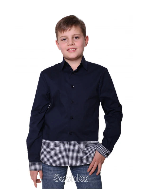 Сорочка для хлопчика Sashka темно-синя з клітинкою, розмір 116-182