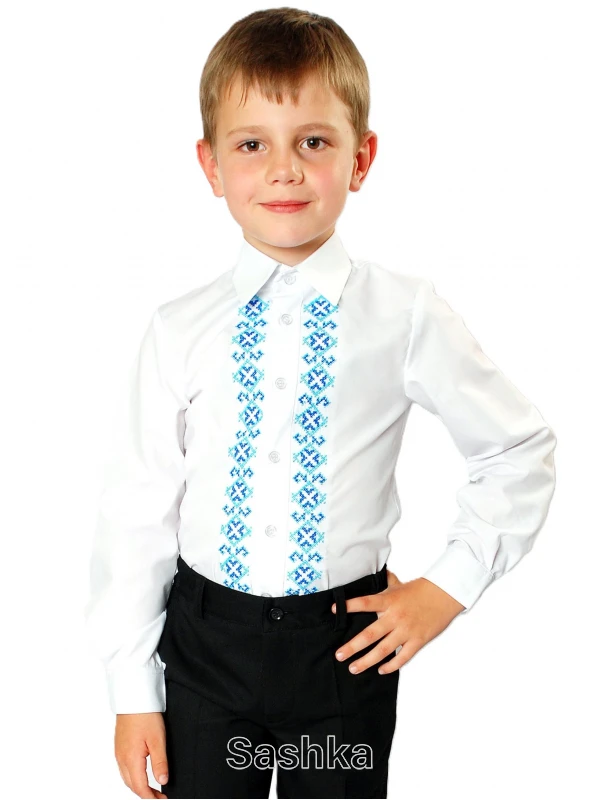 Сорочка має прямий крій, відповідний для будь-якої дитини. Модель доповнена класичними манжетами і щільним коміром, який відмінно поєднується з краваткою чи метеликом. Якщо ви купуєте модель тільки для періодичного надягання на свята, рекомендується зберігати її розвішеного на плічках, трохи в стороні від інших речей в шафі. Це дозволить зберегти форму і менше часу приділити прасування.