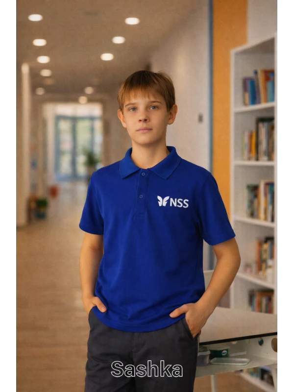 Поло для хлопчика синє з логотипом школи NSS, розмір 116-188