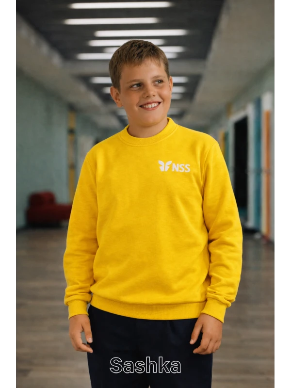 Толстовка на флісі для хлопчика жовта з логотипом школи NSS, розмір 116-176