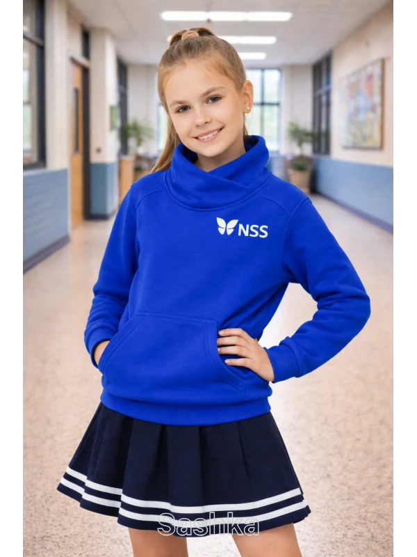 Худі для дівчинки з коміром синє з логотипом школи NSS, розмір 116-164