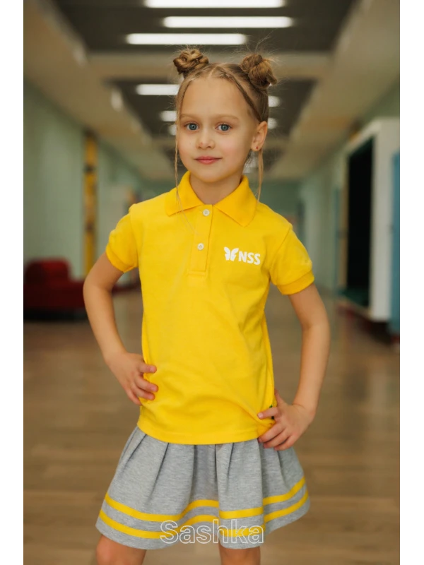Поло для дівчинки жовте з логотипом школи NSS, розмір 116-188