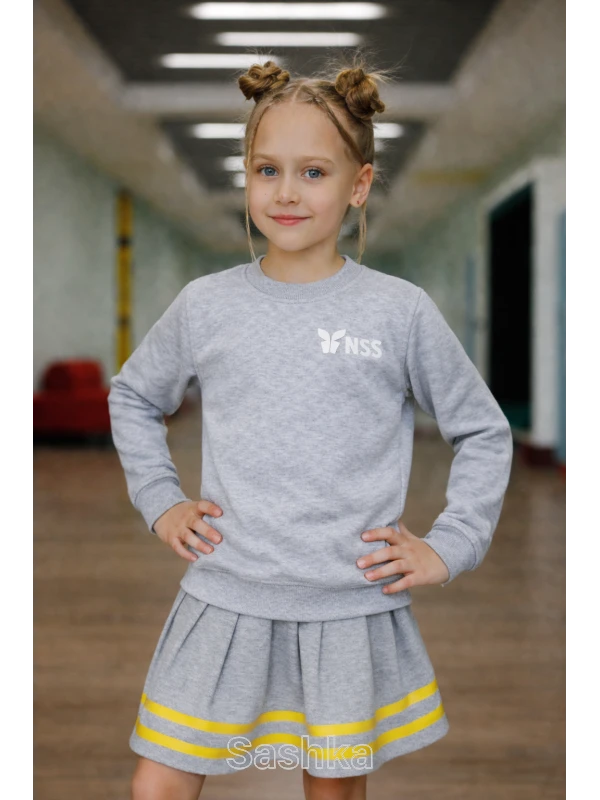 Толстовка для дівчинки сіра з логотипом школи NSS, розмір 116-176