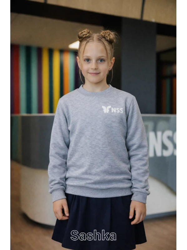 Толстовка на флісі для дівчинки сіра з логотипом школи NSS, розмір 116-176