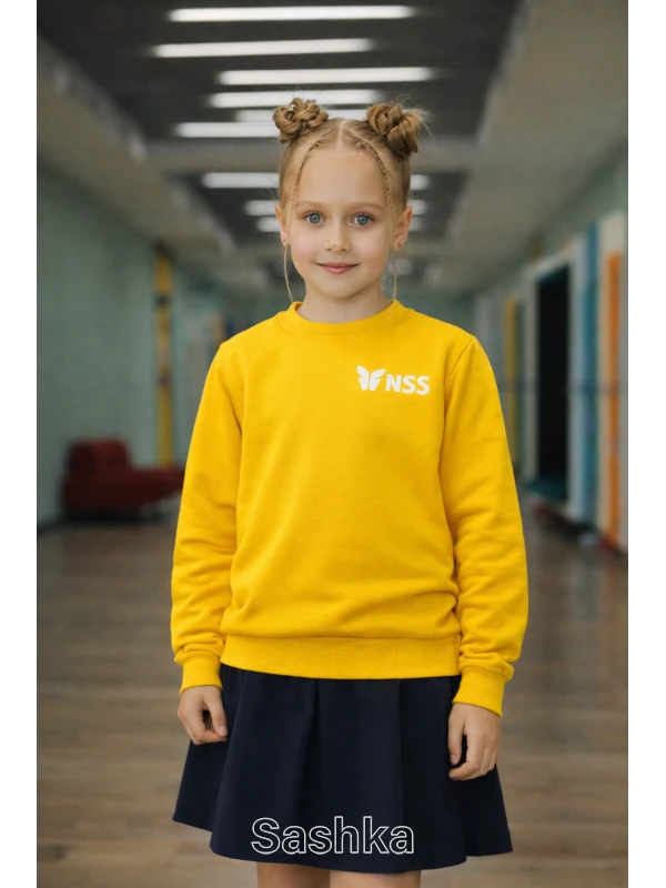 Толстовка на флісі для дівчинки жовта з логотипом школи NSS, розмір 116-176