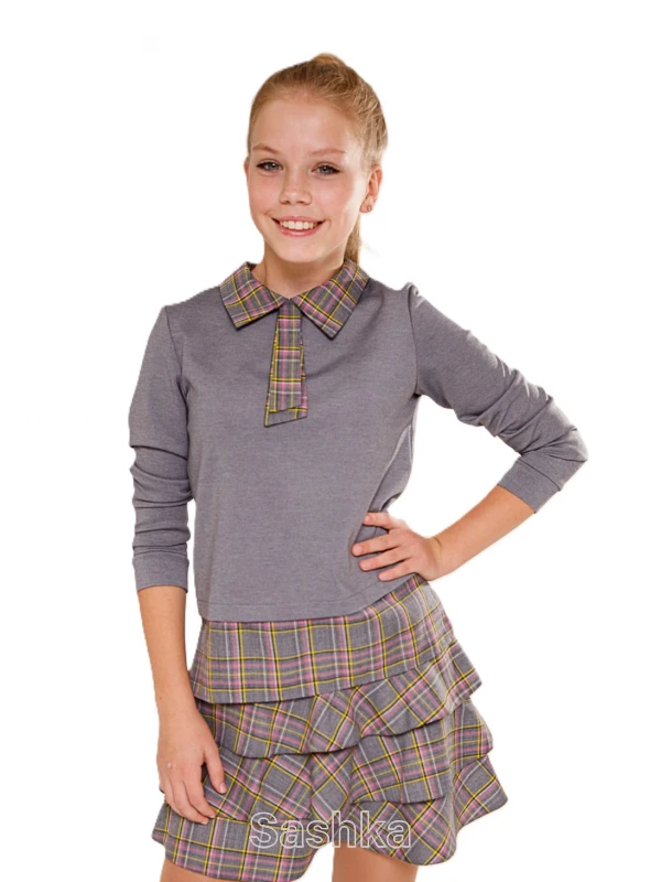 Трикотажний джемпер з коміром і довгим рукавом стане в нагоді вашій маленькій модниці в прохолодний сезон. Це незамінна річ, коли потрібно швидко зібратись і виглядати при цьому на високому рівні.