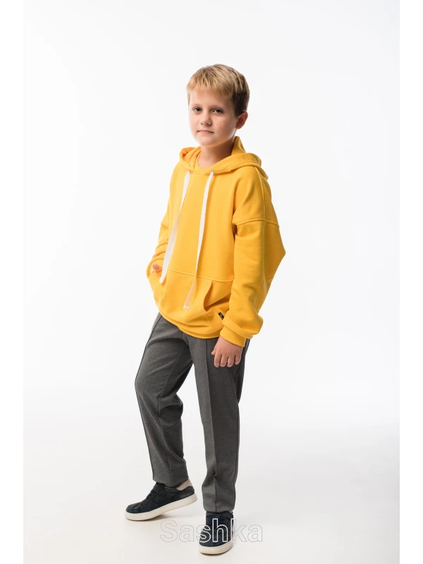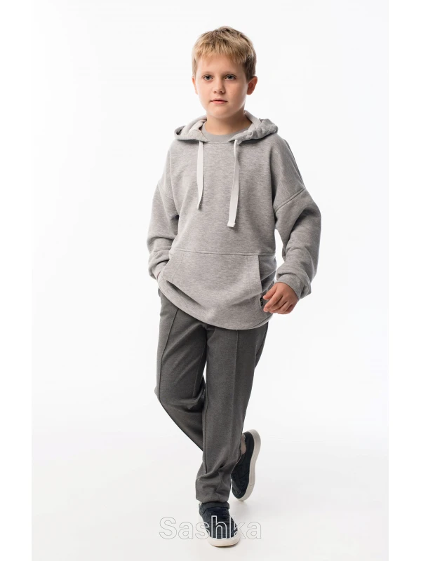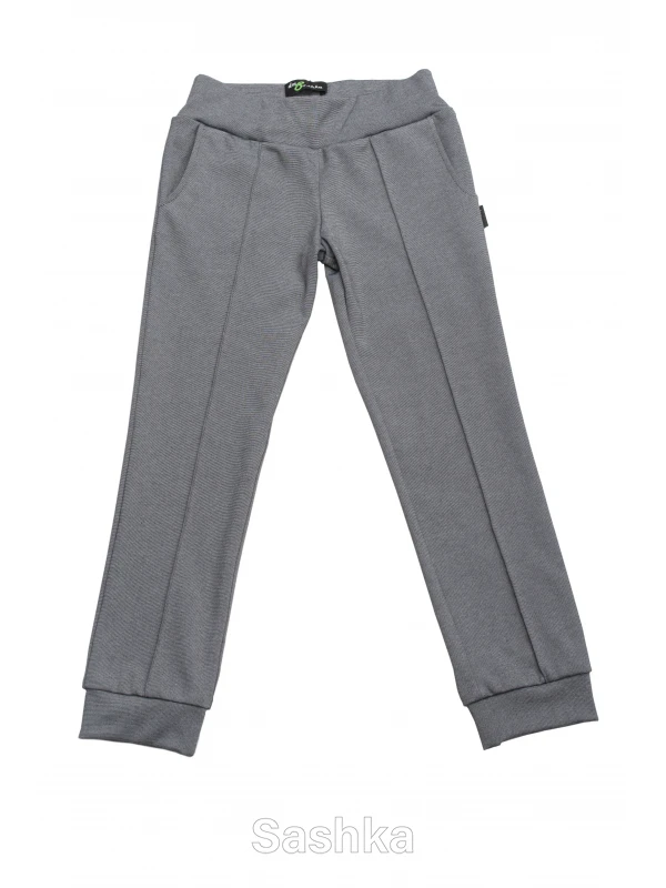 Сірі трикотажні штани зі стрілками- універсальний предмет гардероба для хлопчика.