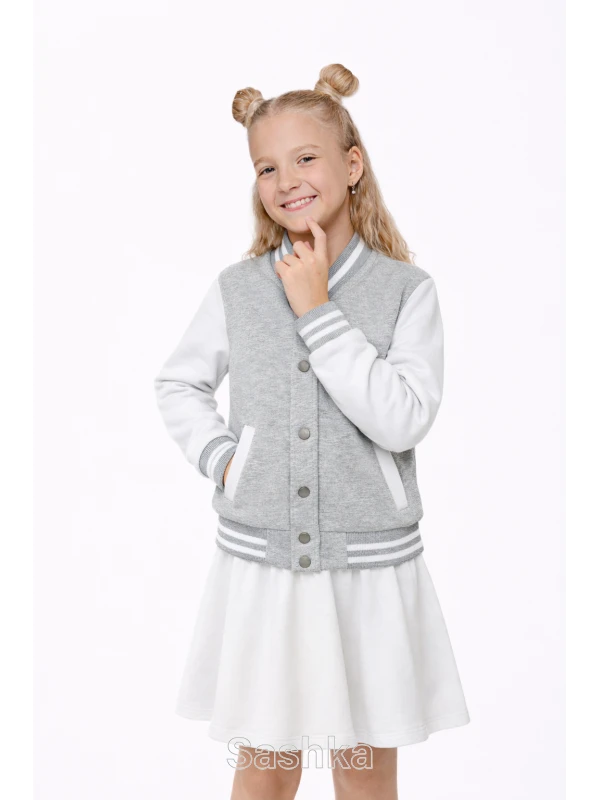 Бомбер для дівчинки Sashka трикотажный (двунитка) сіро-білий, розмір 98-182