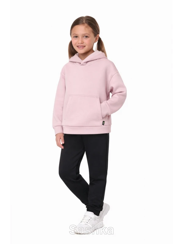 Трикотажний костюм на флісі - це чудовий вибір для оновлення гардеробу. Костюм складається з: пудрового худі і чорних штанів. Сет пошит з якісного трикотажу футер тринитки (Турція) на флісі. Також є можливість купити складові костюму окремо.