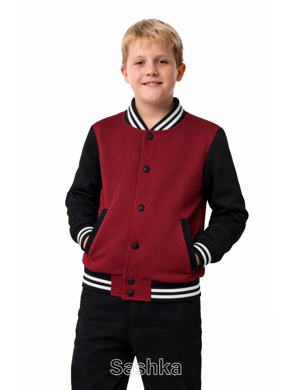 Бордовий бомбер з чорними рукавами утеплений - втілення стилю і комфорту. Модель являє собою скорочену куртку з м'якого трикотажу футер тринитки (Турція) на флісі.